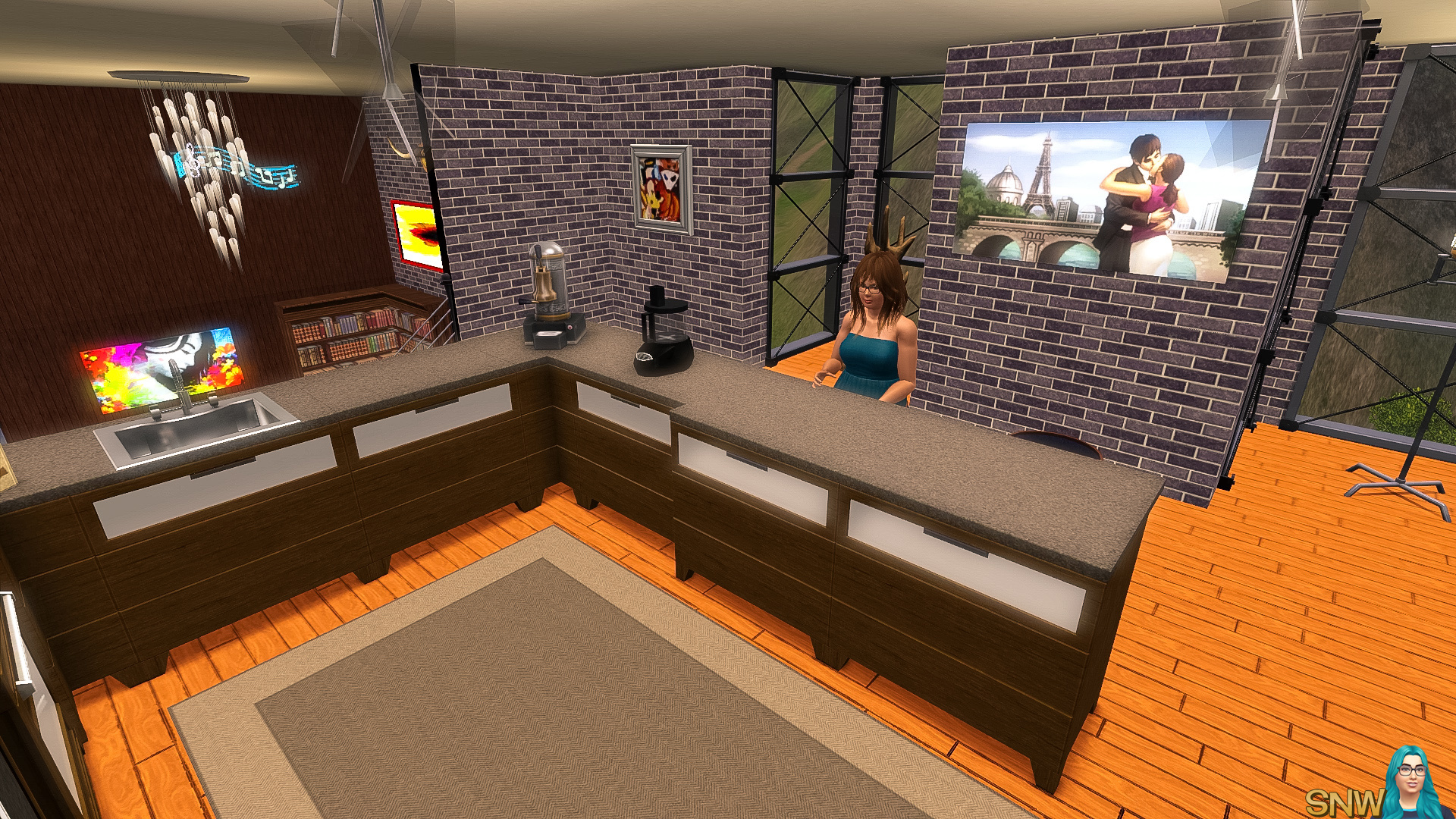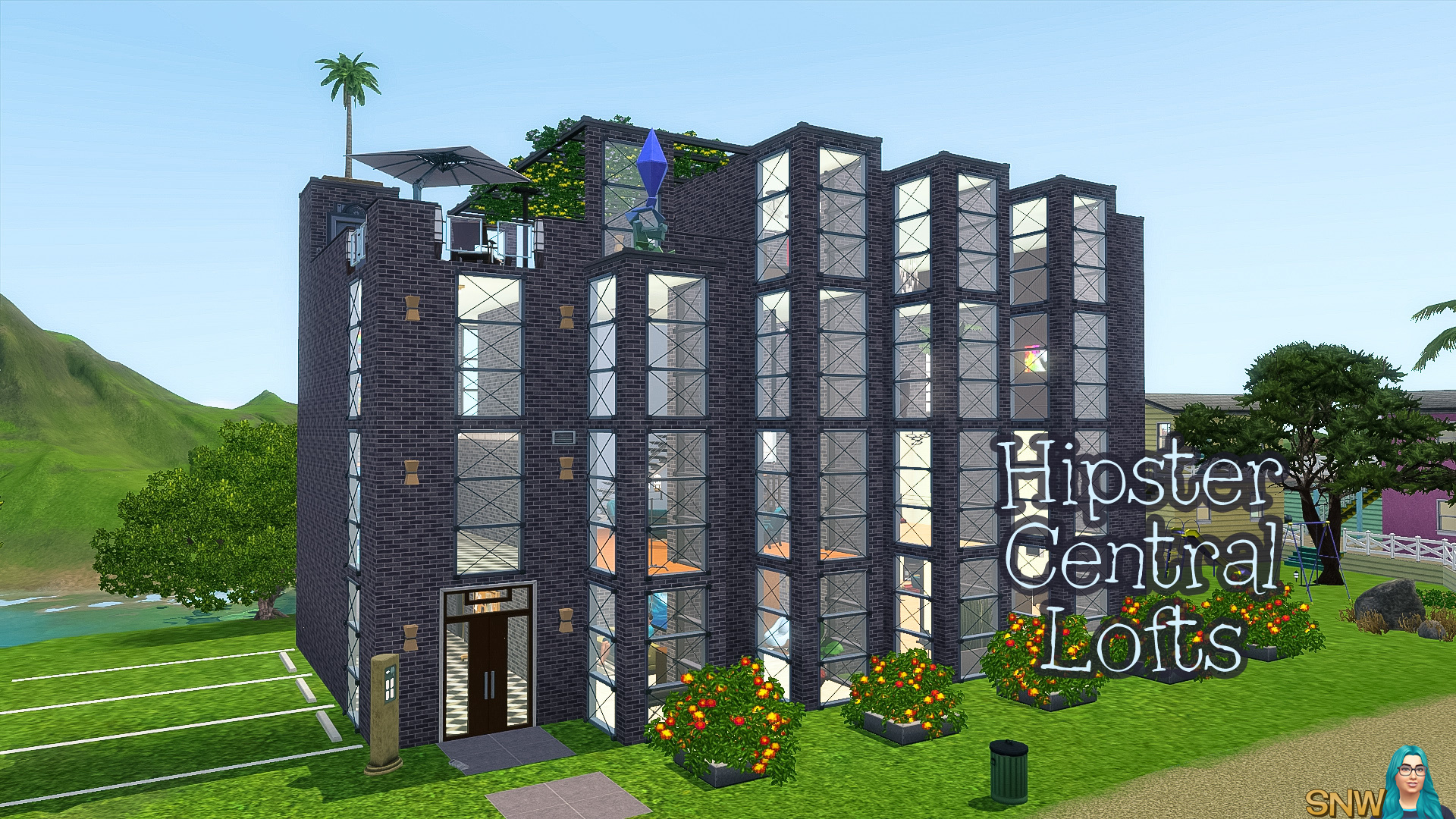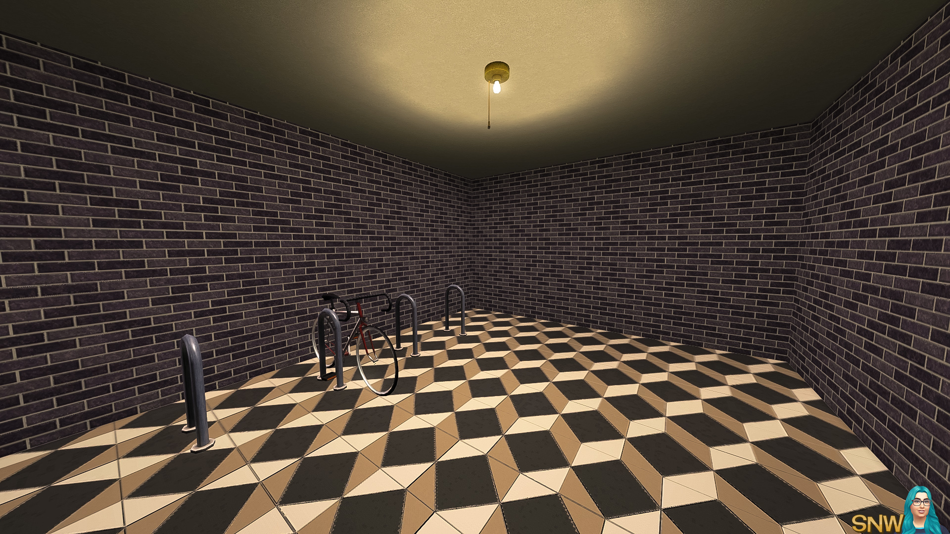 This loft has the most hipster furniture of them all. It has stairs leading to the bedroom and separate bathroom. Again all the basics are here. There is another room with has a single bed, desk and dresser. In theory you could place 3 Sims in this loft, but it might be too small. I'd have two Sims live here at most.