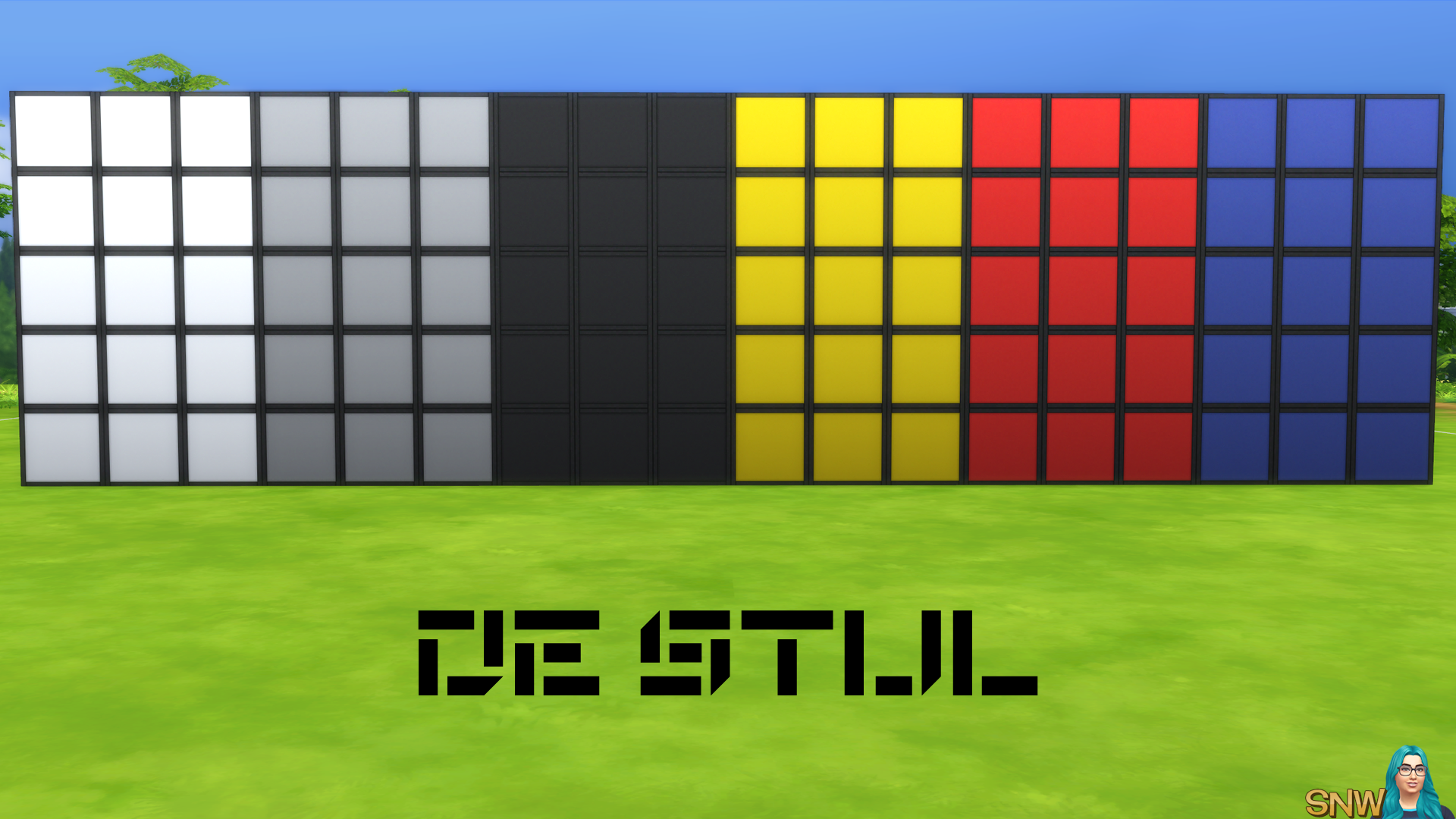 I created a huge set of walls, floors, doors, and windows so we can enjoy "De Stijl" in our game!