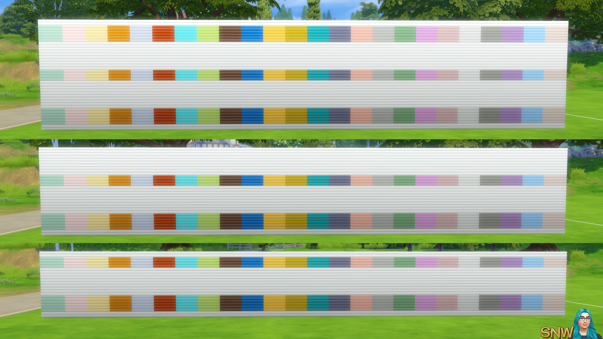 I made two styles. A flat/simple style, and a more bold/bevel style. I couldn't choose, and the followers on Twitter and Facebook liked both versions. That's why I decided to create both! Each style comes in 5 variations. This specific set of walls has 24 colour swatches to choose from!