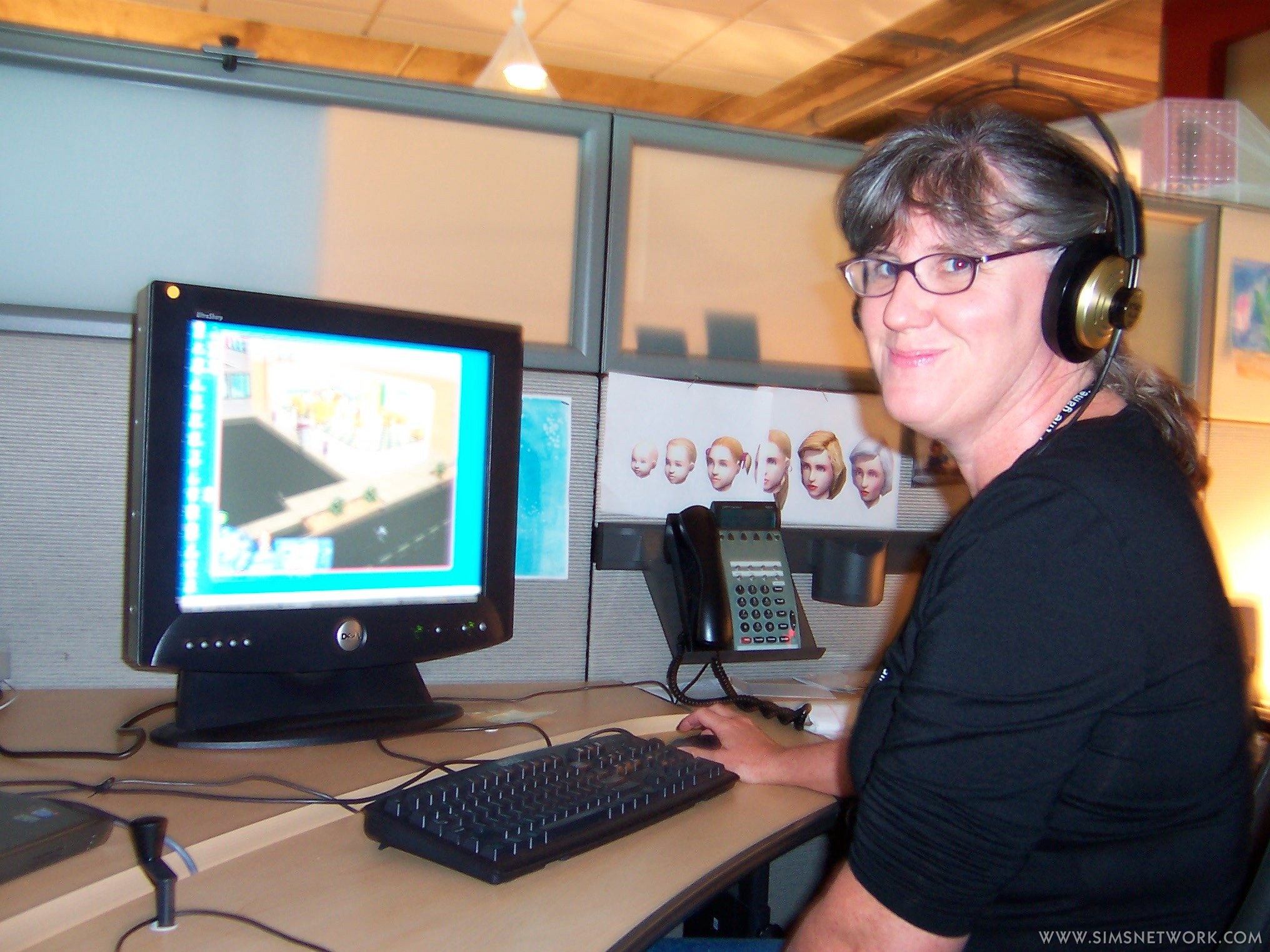 So now it is five years since Simlish was born, and the tradition is carried on by an additional nine actors performing all the age range voices: baby, toddler, child, teen, adult and elder. The auditions were held January through May 2003 with over 100 actors from SF and LA trying out. We selected a highly talented cast and quickly got them to work recording many full 8 hour days, recording voice to over a hundred animations a day, resulting in thousands of takes a day.