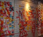 Thanks, Scot – the game's really shaping up to be something special. And speaking of special, did you know that the Urbz website has an infinitely large wall of bricks for you to tag up with messages to send to all your friends. Since we're all friends here, I thought I'd send you guys all a little graffiti tag of my own, to let you all know what I *really* think about you!