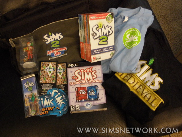 Nostalgia Package 2 includes 2 t-shirts, 2 The Sims expansions, Plumbob keychain, The Sims 2 Apartment Life messenger bag & more!