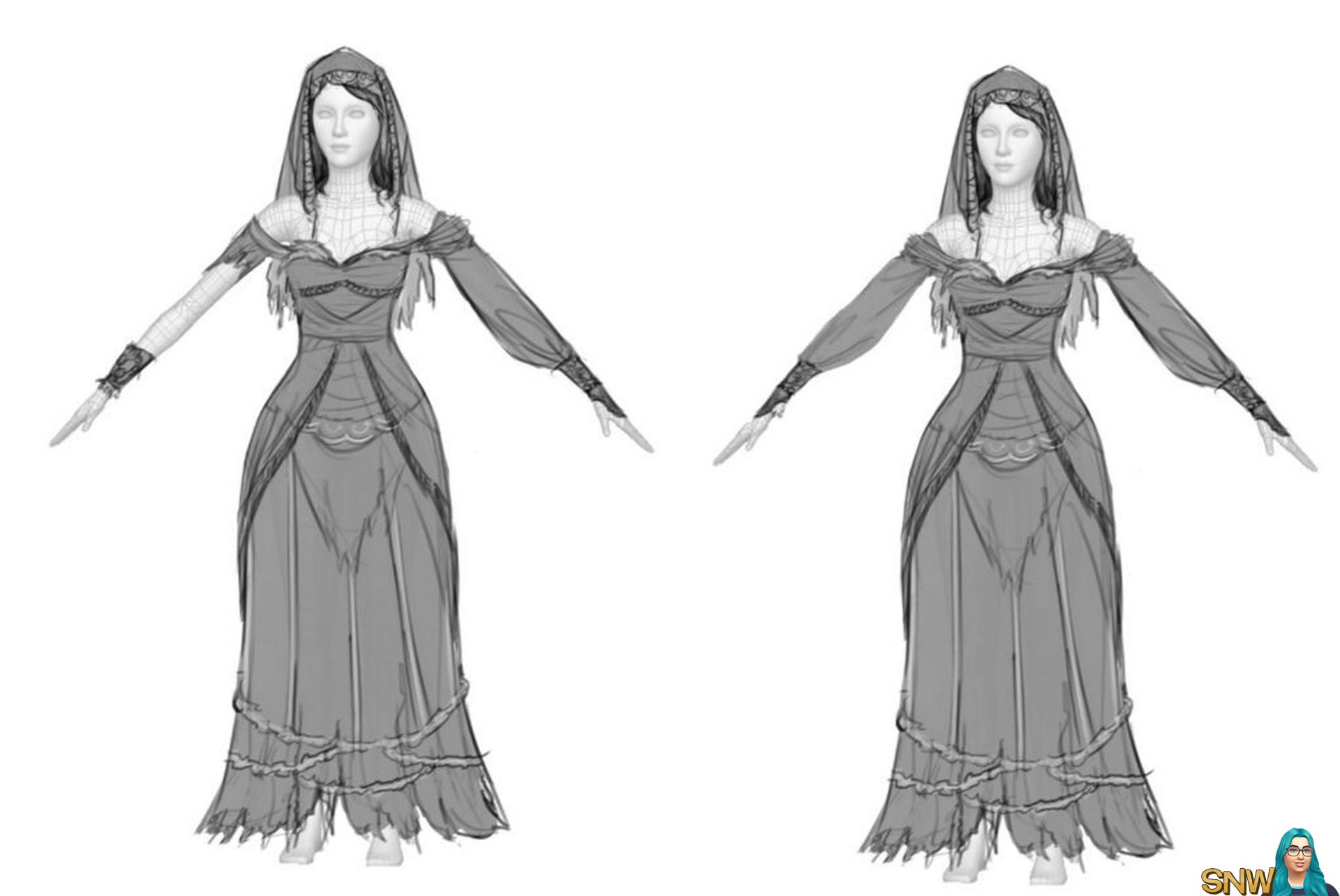 A I own one in real life very similar to the Victorian-style gown, so I'm fond of dressing my "me-Sim" in that.