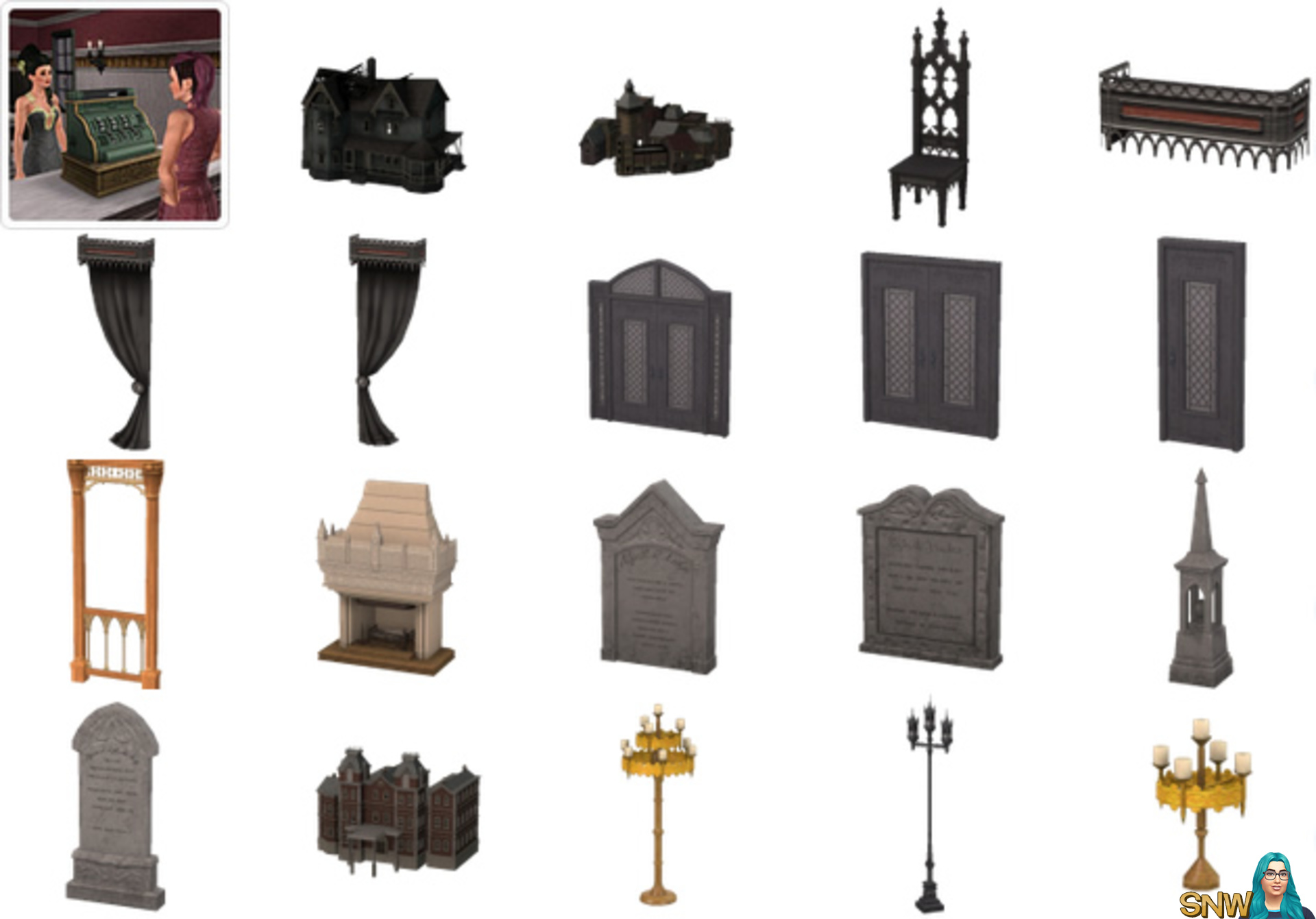 A There are some new doors, a spooky bookshelf, a tombstone bed, a fireplace with glowing eyes (which I love!) and more!