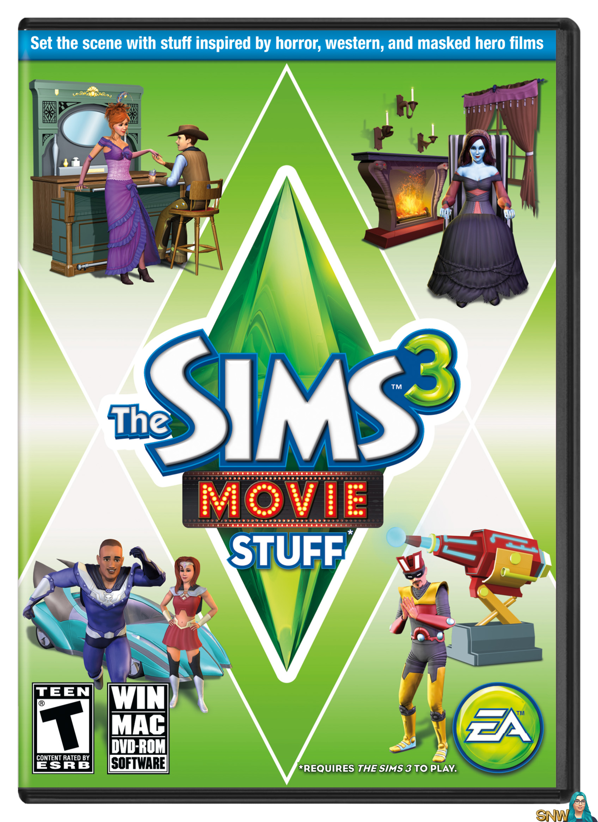 Also revealed today, was The Sims 3 Movie Stuff pack. With The Sims 3 Movie Stuff pack, you can be inspired to tell all-new stories inspired by iconic movie genres like Western, Comic Book Blockbuster and Creepy Features. What story will you tell with the movie making stuff?
