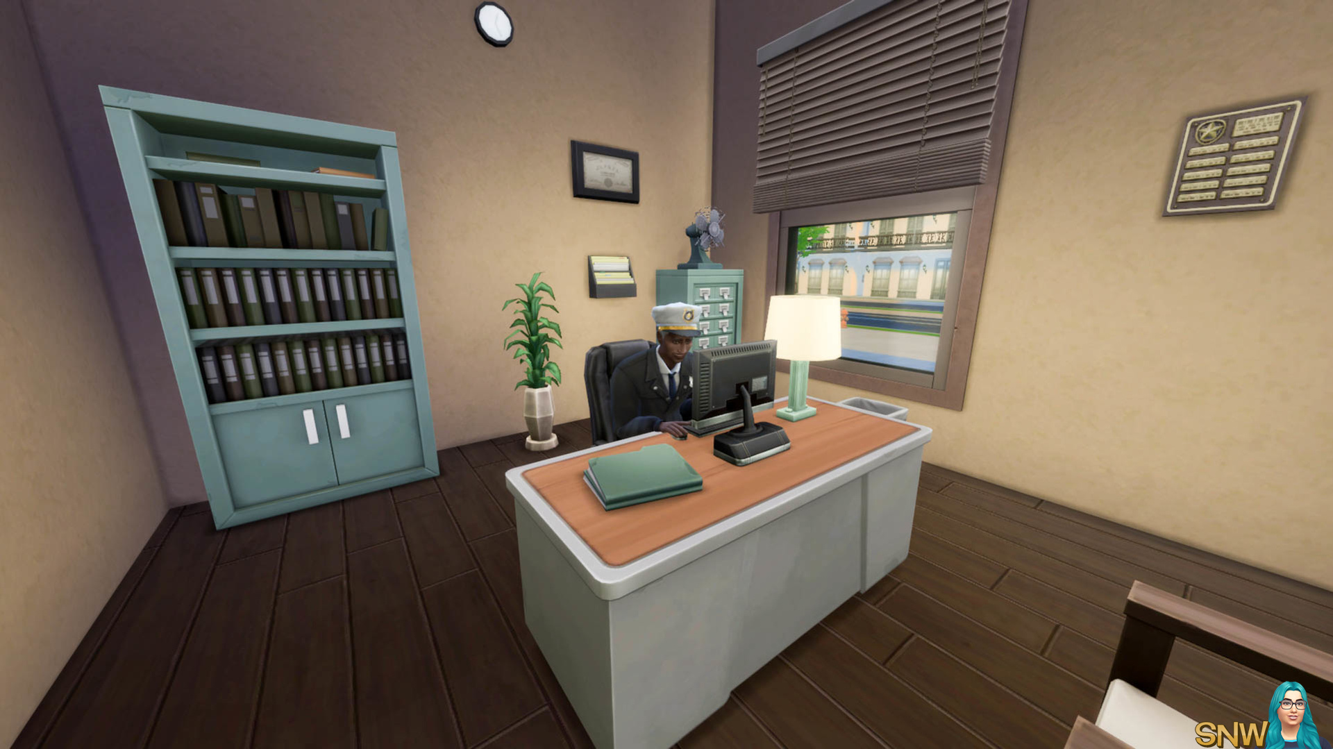 This room has three desks with computers on them where you can complete certain tasks. If they're taken by another Sim, just click on what you want to do and what until they leave.