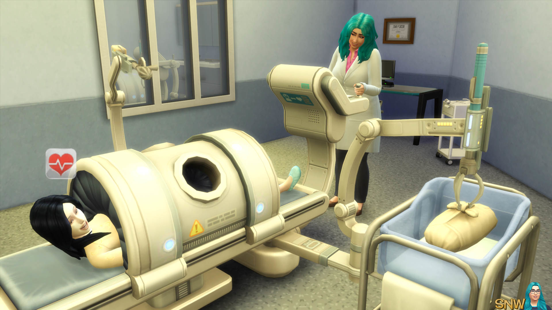 One of the funniest things in The Sims 4: Get to Work is the Surgery Table. This isn't only used for surgery when a Sim is ill. It's also used for delivering babies! Just look at that mother's happy face! Oh and don't be surprised if your Sim takes out the wrong organs every now and then haha.
