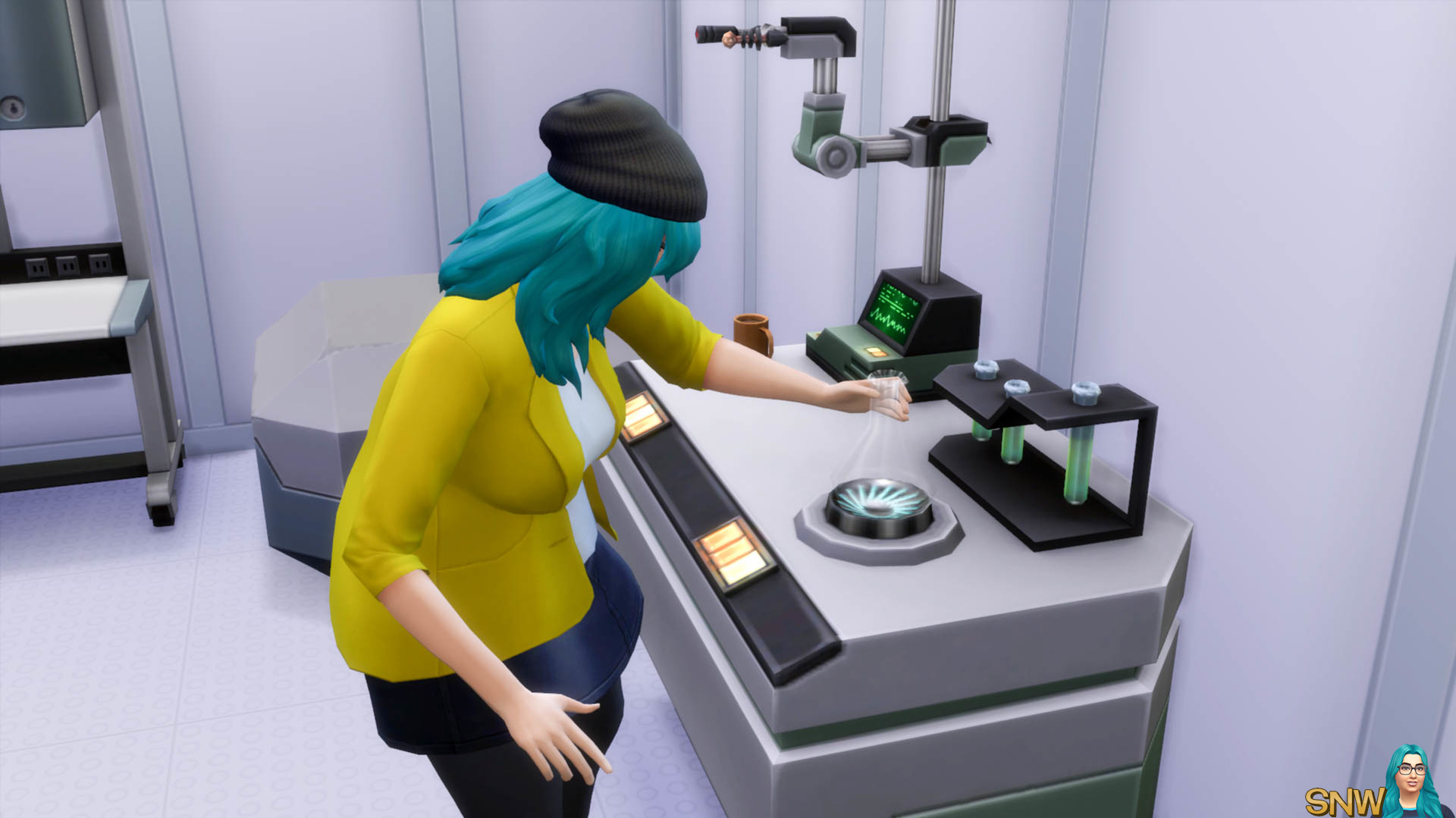 Here's my Sim experimenting on the Chemistry Lab. She's making a serum here.