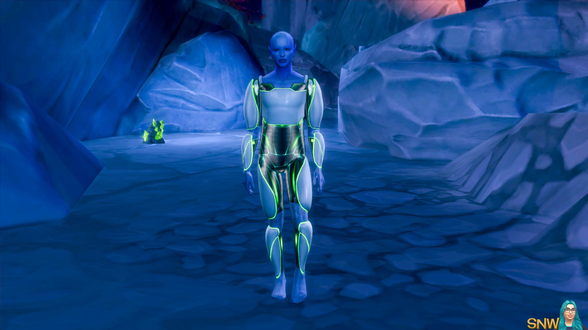 Aliens have the ability to hide in a human Sim shape if they so choose. In their alien form they don't have hair and they have limited outfit options. Though at the time I'm writing this review there is a trick to get your aliens to wear normal clothing anyway; Just get the aliens to buy clothing the mannequins in clothing stores are wearing.