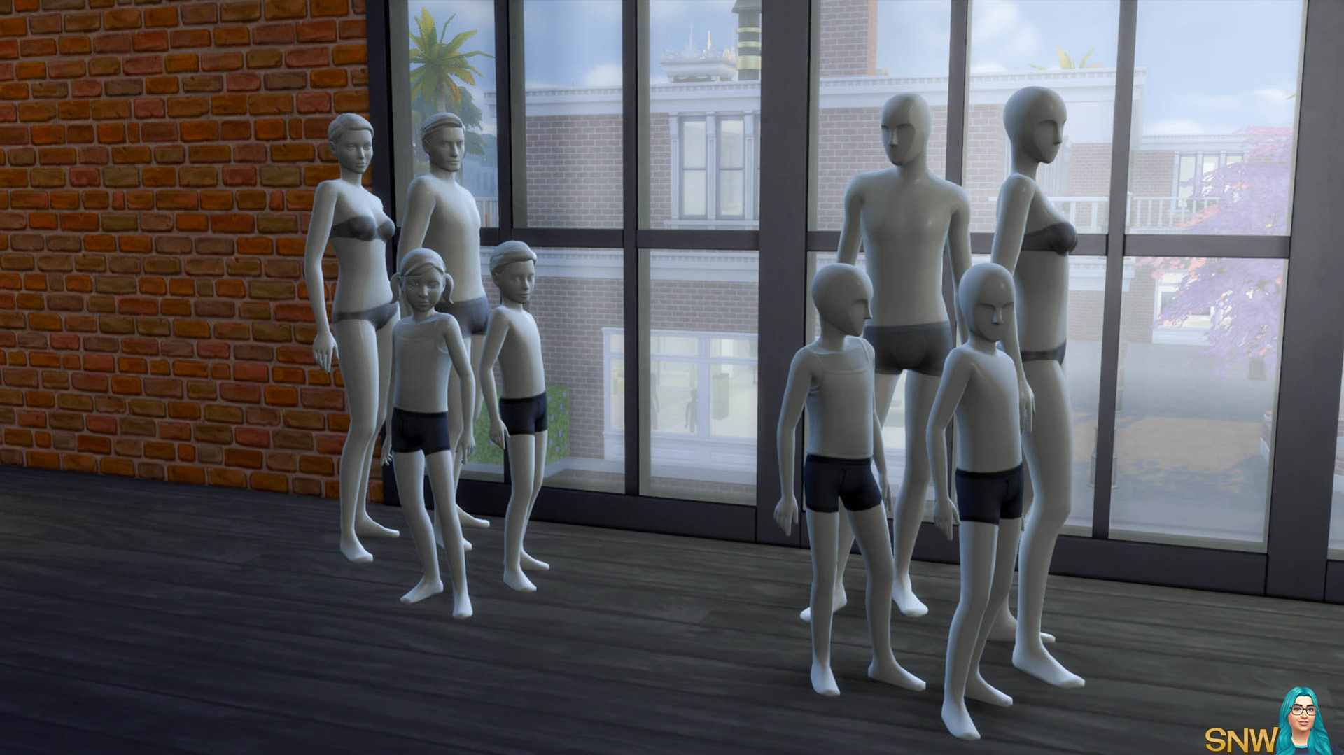 The Sims 4: Get to Work comes with 8 mannequins to use in clothing stores. One set of mannequins is realistic whereas the other set is abstract. Both sets have adult male, adult female, child male and child female.